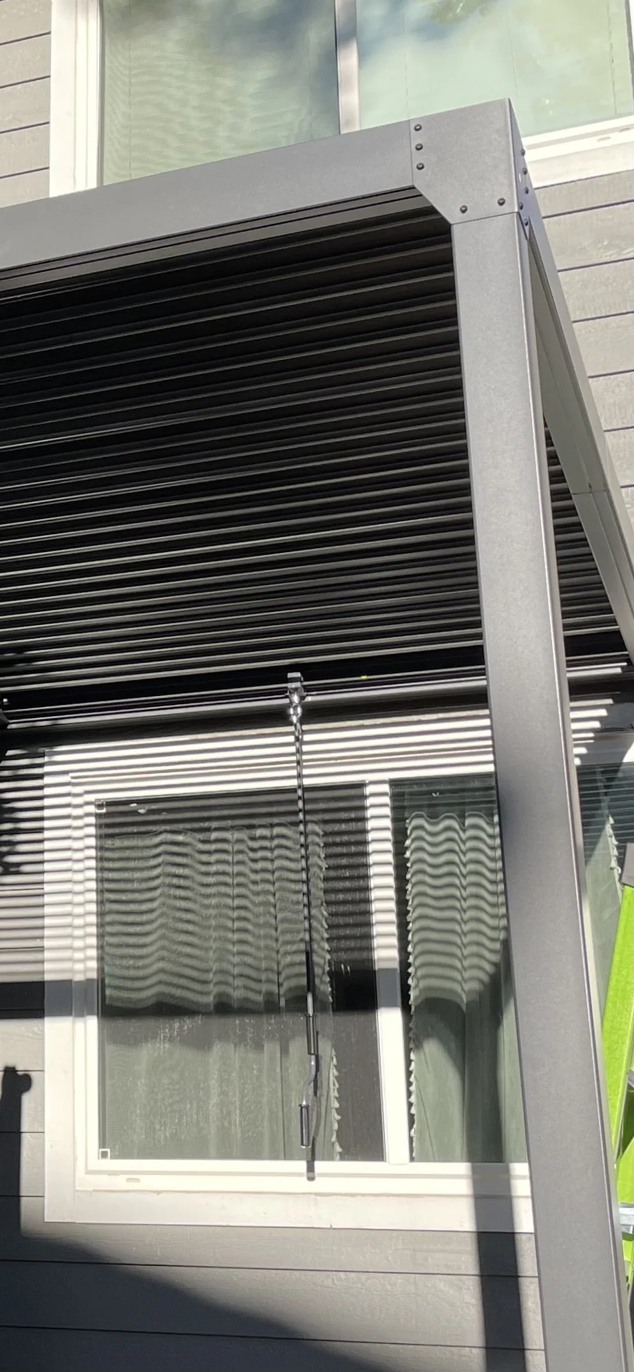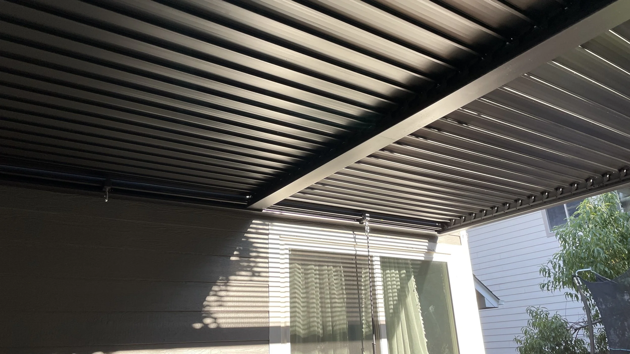 Modern Attached Metal Pergola with Adjustable Louvers — Charlotte, NC