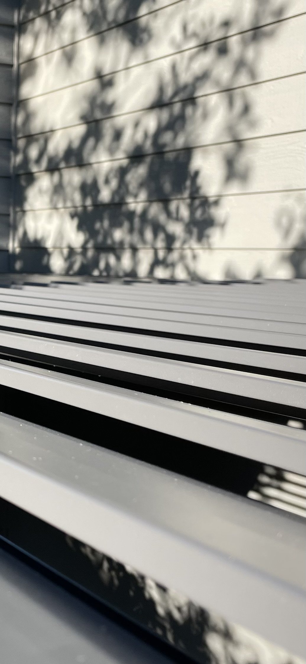 “We love how clean and modern the pergola looks. It gives us full control over shade during the day and keeps us dry when it rains — just perfect for our patio!”