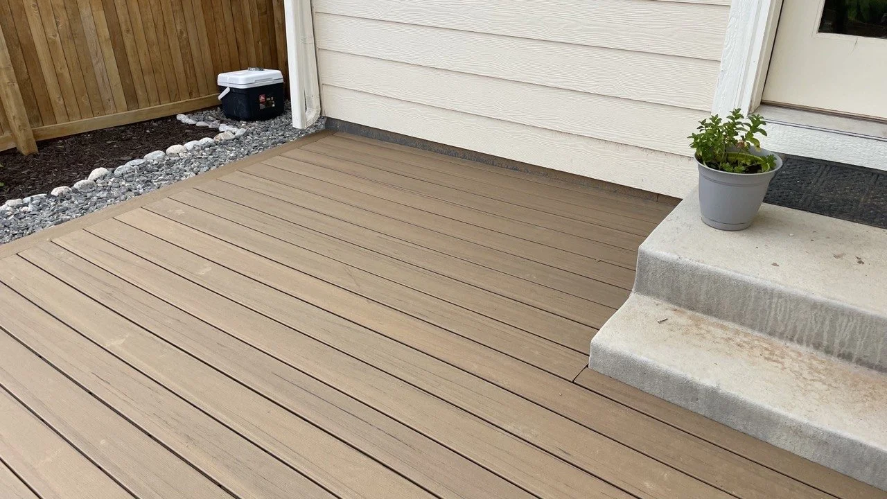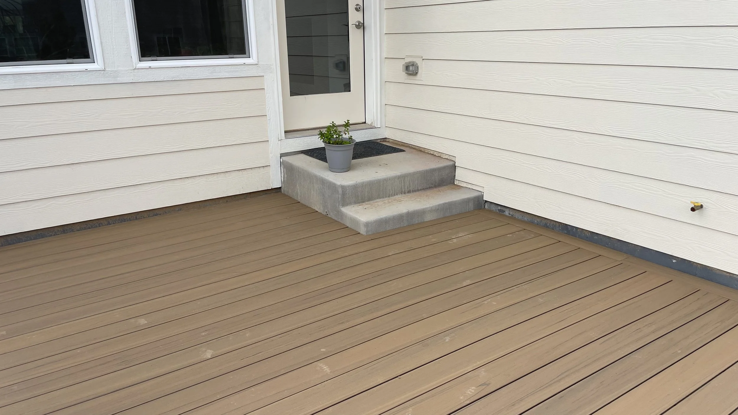 This low-profile composite deck is not only weather-resistant and beautiful but also safe, cool to the touch, and built to last with no need for staining or sealing.